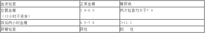 糖尿病化验诊断(单位:mmol/L)
